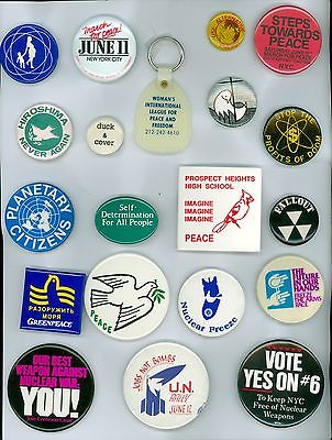 Title (ebay affiliate link): 19 Vintage 1980s Peace Anti-Nuclear War Pinback Buttons - Hiroshima Never Again