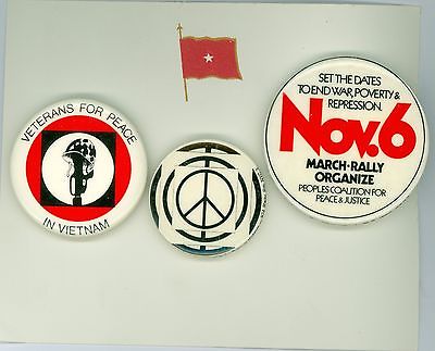 Title (ebay affiliate link): 3 Vintage 1960s-70's Anti-Vietnam War Pinback Buttons - Veterans For Peace
