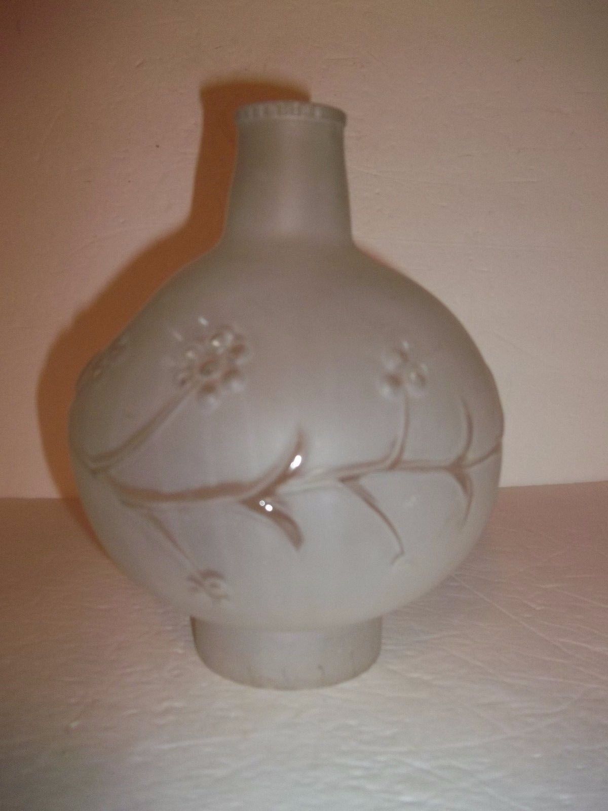 Rare Vintage GWTW Hurricane Oil Lamp Shade Globe Chimney Satin Glass Flower Vine