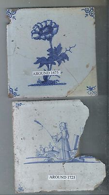2 ANTIQUE DUTCH DELFT TILES AROUND 1675 + 1725