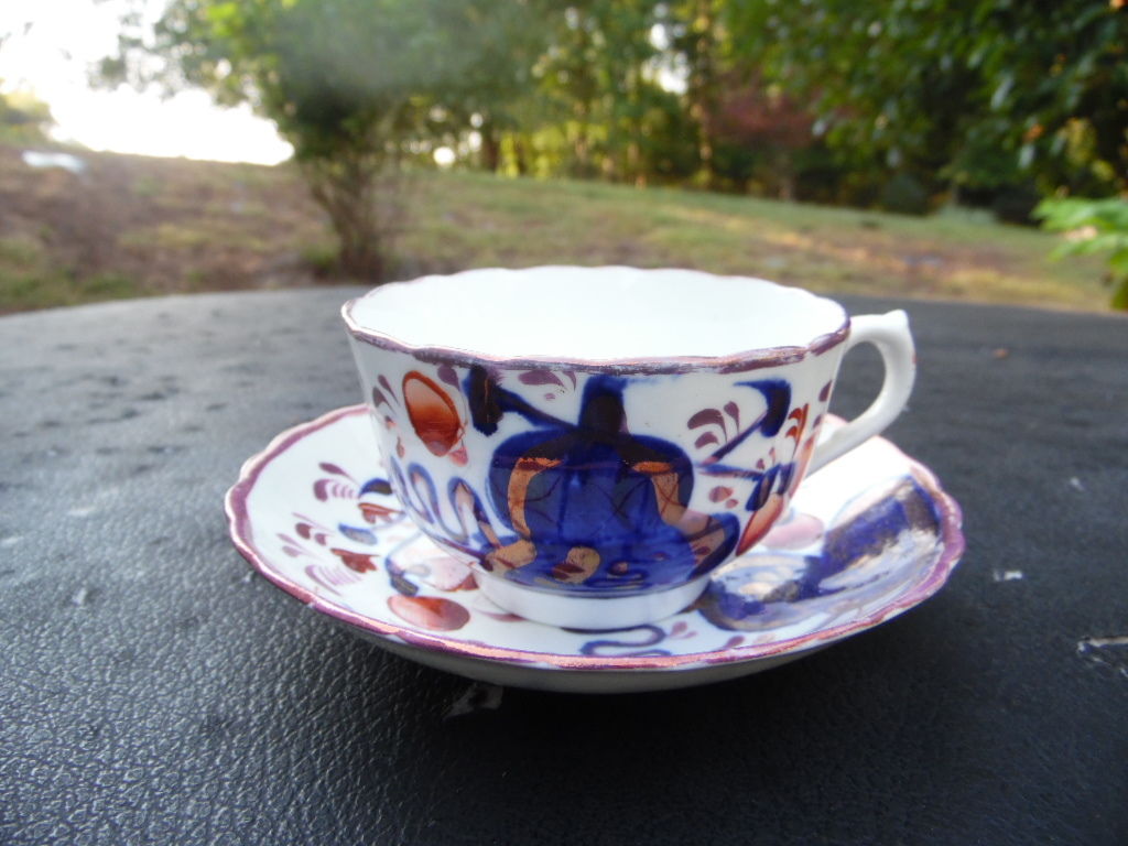 Antique Gaudy Welch Cup And Saucer Combo / Oyster Pattern / Number 3