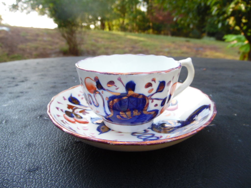 Antique Gaudy Welch Cup And Saucer Combo / Oyster Pattern / Number 4