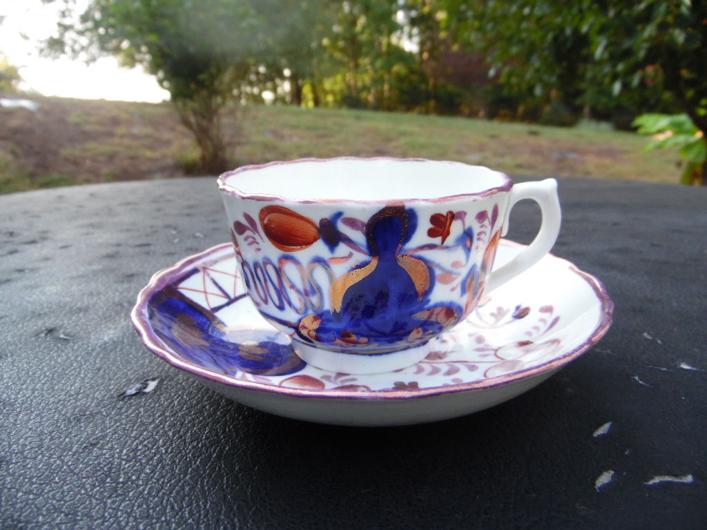 Antique Gaudy Welch Cup And Saucer Combo / Oyster Pattern / Number 1
