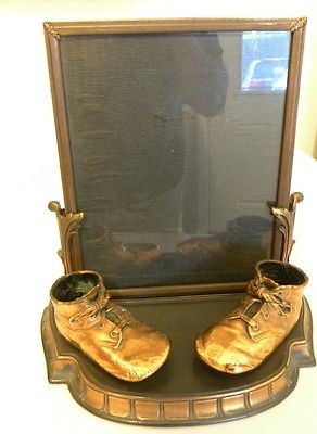 VTG/ANTIQUE Mounted Bronze Baby Shoes & PICTURE FRAME