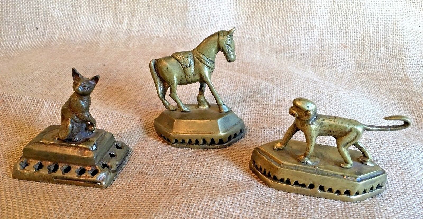 Set of 3 Antique Brass Bells/ Horse Monkey Cat