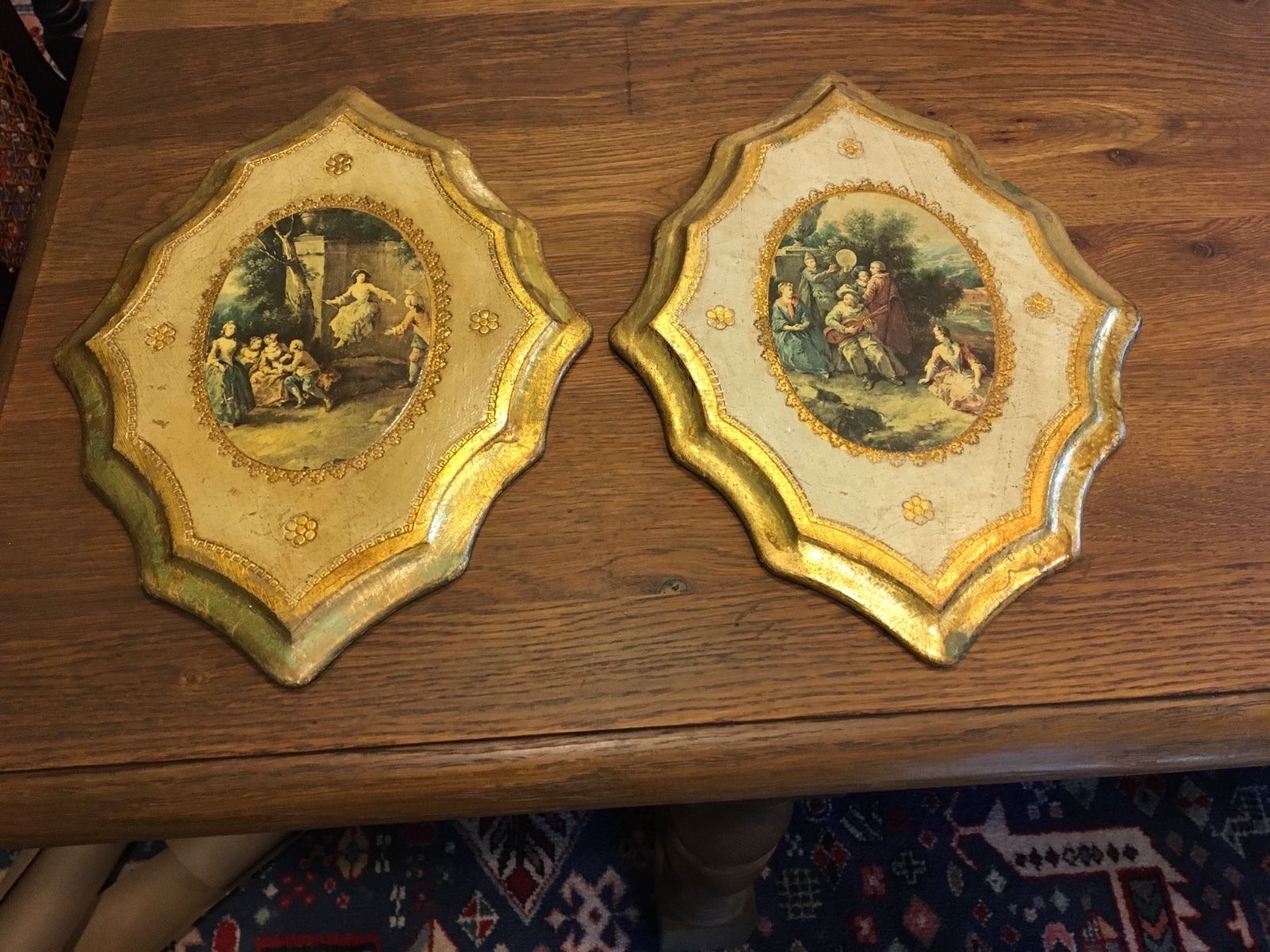 Title (ebay affiliate link): VTG PAIR 11 1/2" Wooden Florentine Wall Plaques-Victorian Scenes-Gold Gilt-Italy