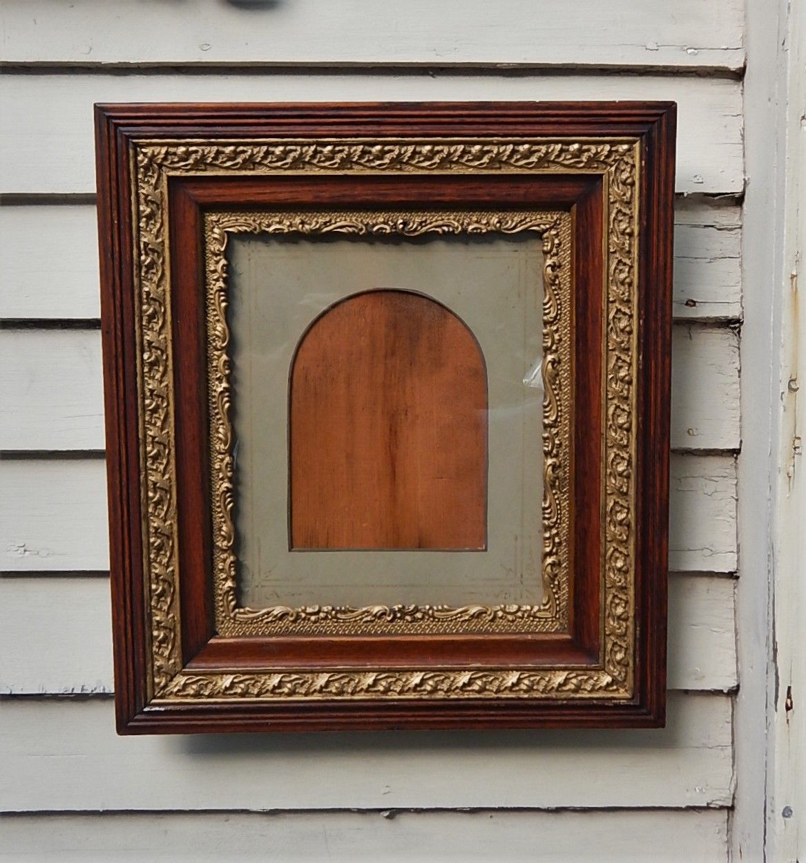 Title (ebay affiliate link): Antique Oak & Gold Gilt Gesso Picture Frame 19" x 16 3/4" w/ Domed Mat Very Nice