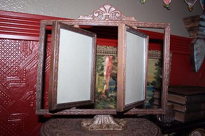 Antique Vintage Art Deco 30s Carved Wood Table Double Picture Frame Swing Pivot
