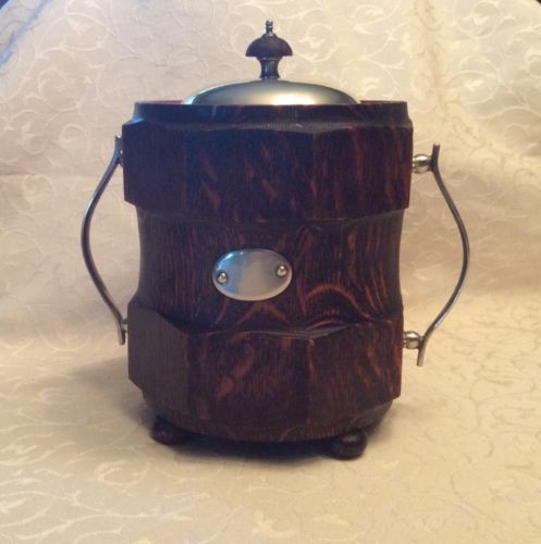Vintage Oak 8 Sided EPNS Biscuit Barrel With Handles