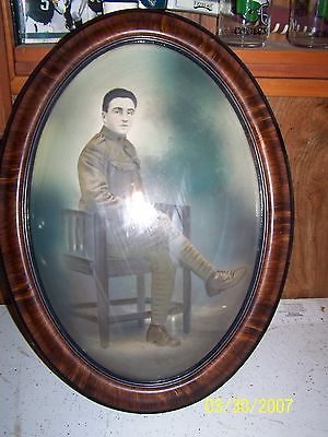 VINTAGE BUBBLE GLASS OVAL PICTURE FRAME WITH MILITARY PIC