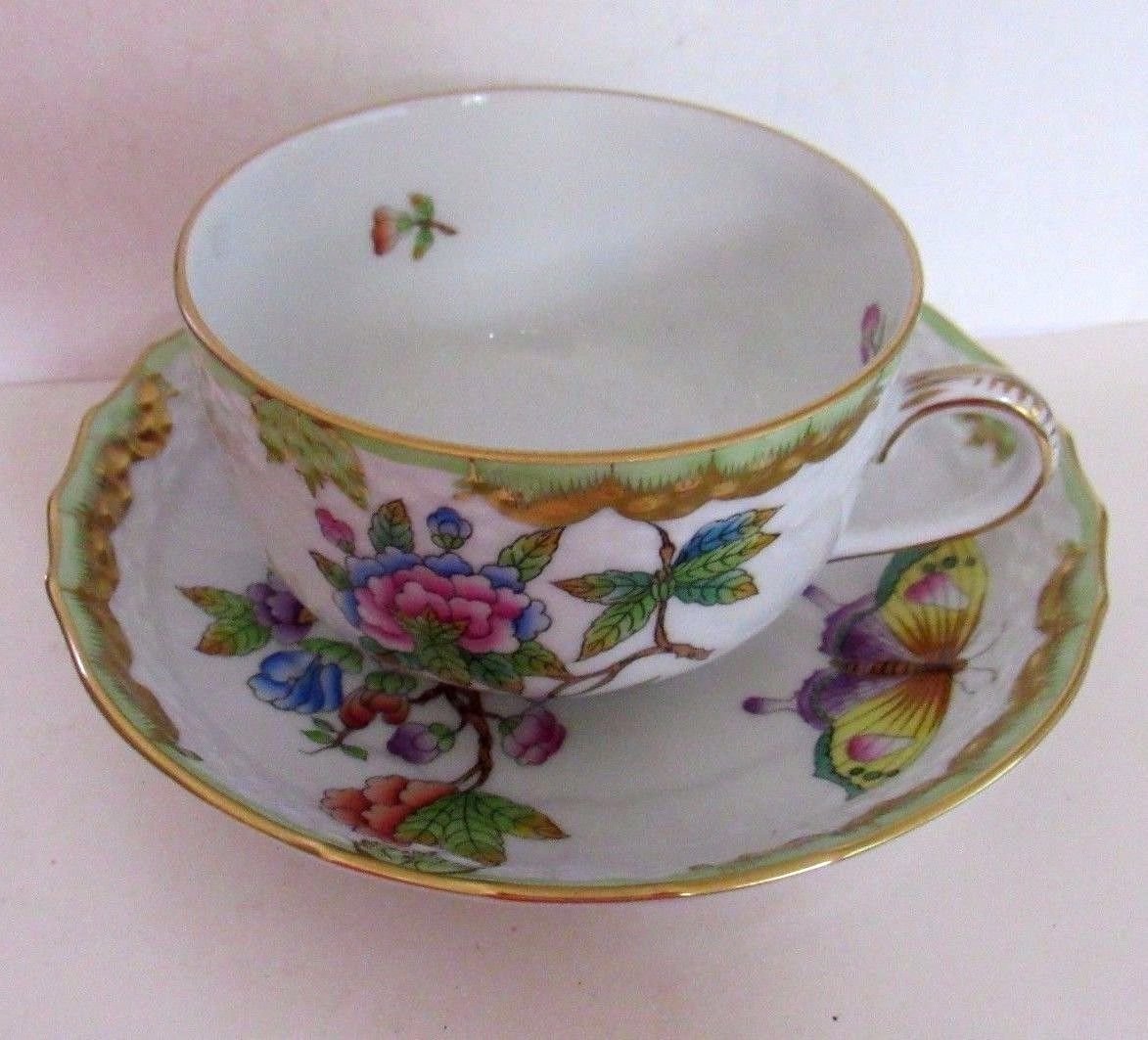 Title (ebay affiliate link): Herend Hungary bone china cup and saucer multi bright color flowers, butterfly