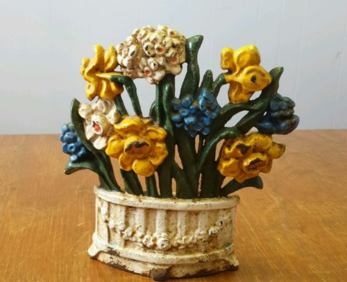 Title (ebay affiliate link): Vintage Cast Iron Door Stop Spring Flowers Bouquet with Floral Garland