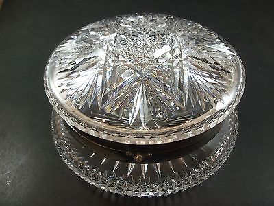 American Brilliant Cut Glass Hinged Round Powder Dresser Jewelry Box Jar