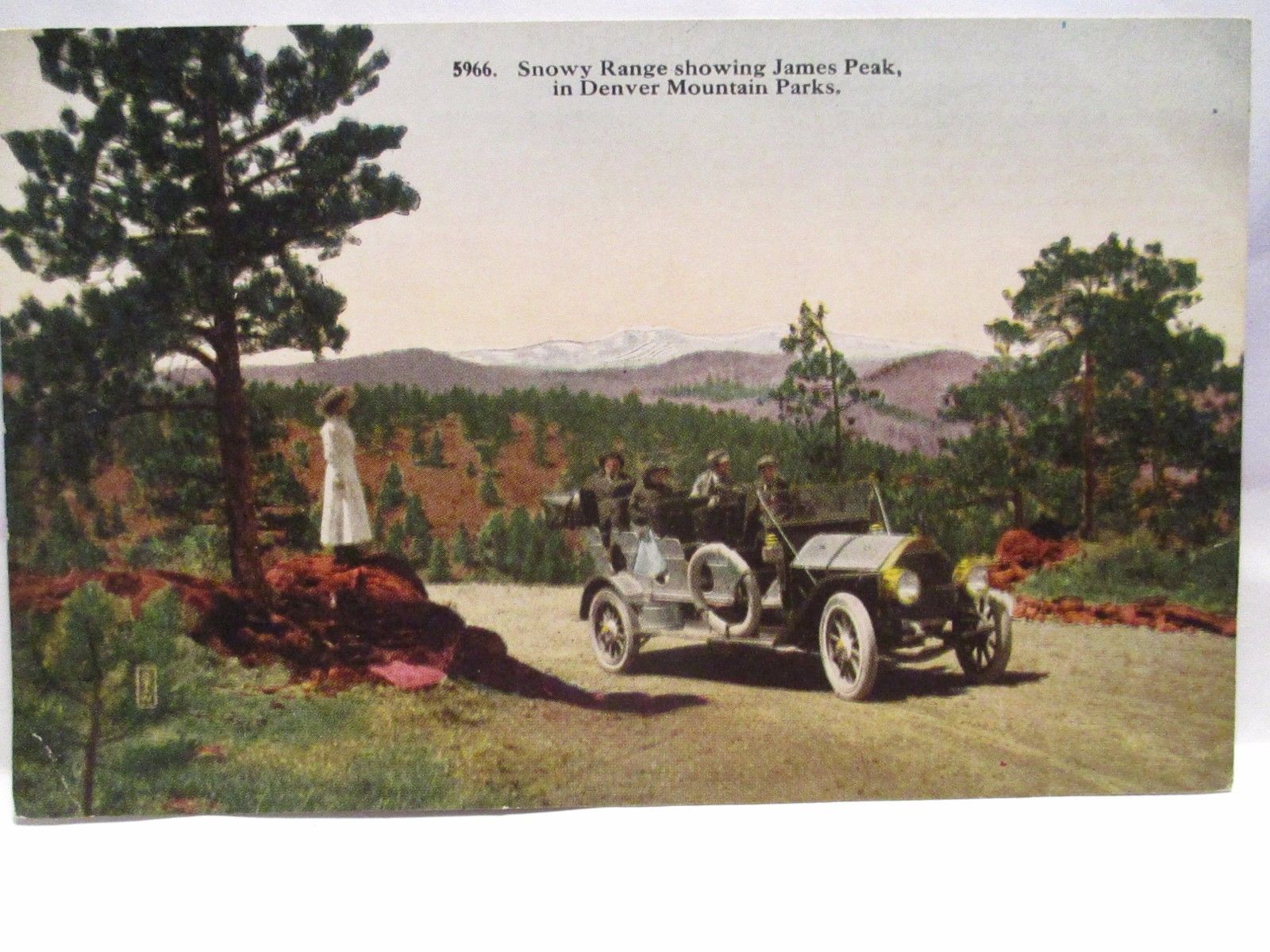 Title (ebay affiliate link): 1910 POSTCARD SNOWY RANGE SHOWING PIKES PEAK DENVER MOUNTAIN PARKS W/ CAR UNUSED