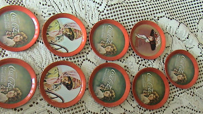 Title (ebay affiliate link): 9 Old Metal Coca Cola Advertisement Coasters