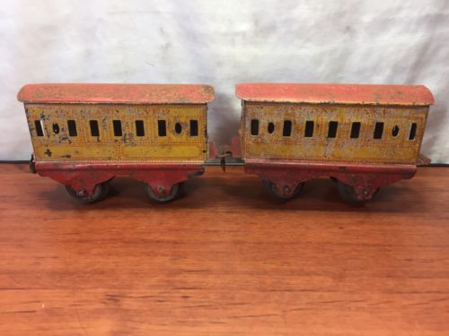 Title (ebay affiliate link): 2 Vintage Collectible Prewar 1930's Overland Flyer Pressed Steal Train Cars