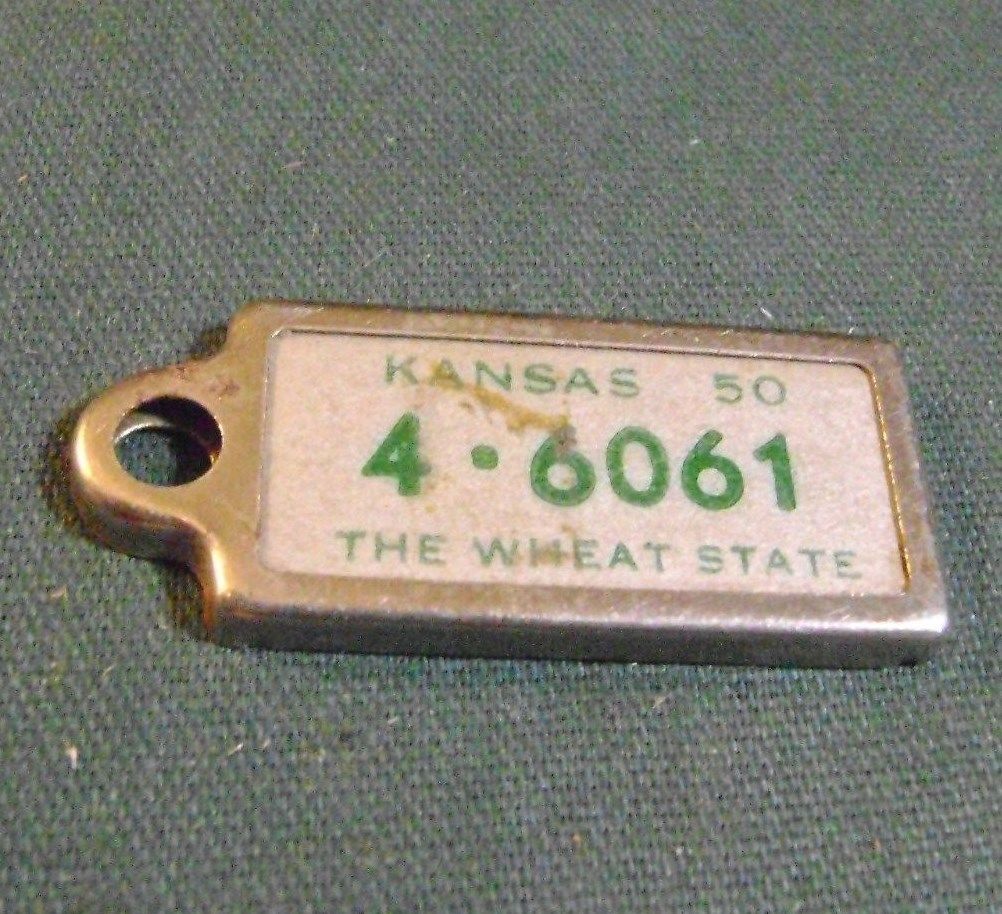 Title (ebay affiliate link): VINTAGE 1950 KANSAS MINIATURE LICENSE PLATE KEYCHAIN