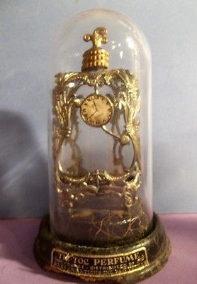 vtg 1940's NOVELTY MANTLE CLOCK perfume bottle BABS CREATION DISPLAY DOME antiqu