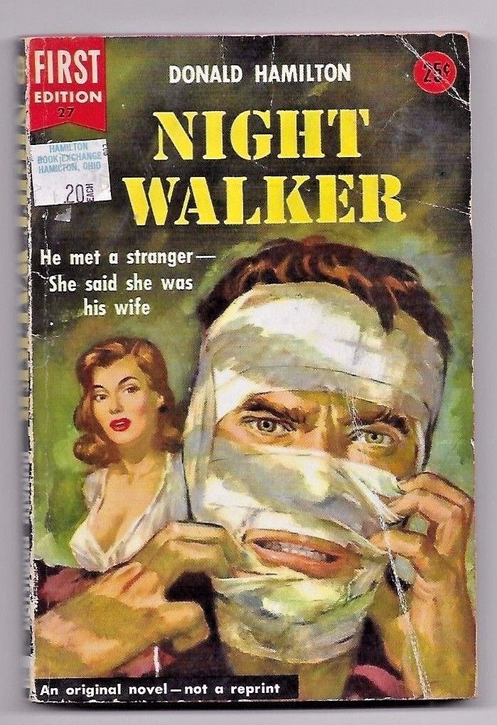 Title (ebay affiliate link): "NIGHT WALKER" -Donald Hamilton-PBO- 1st Print 1954 Dell First Edition #27