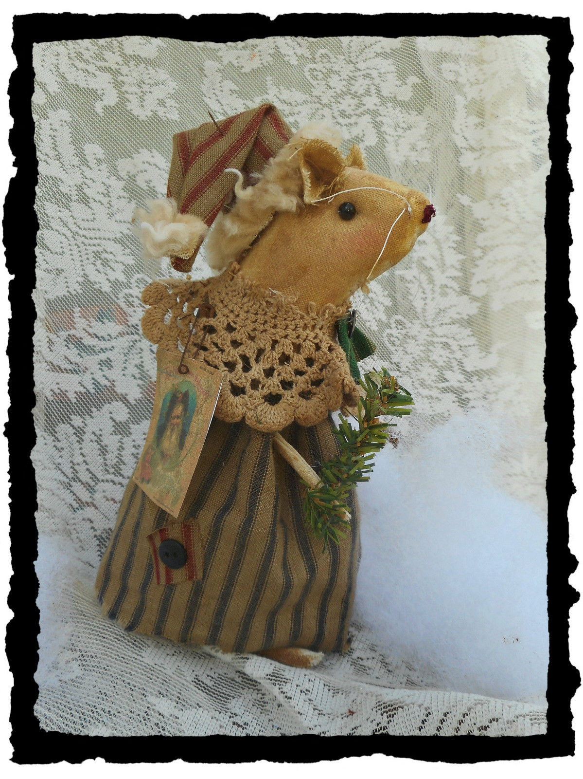 Primitive Handmade*Twas The Night Before Christmas* Standing Mouse Doll*OOAK