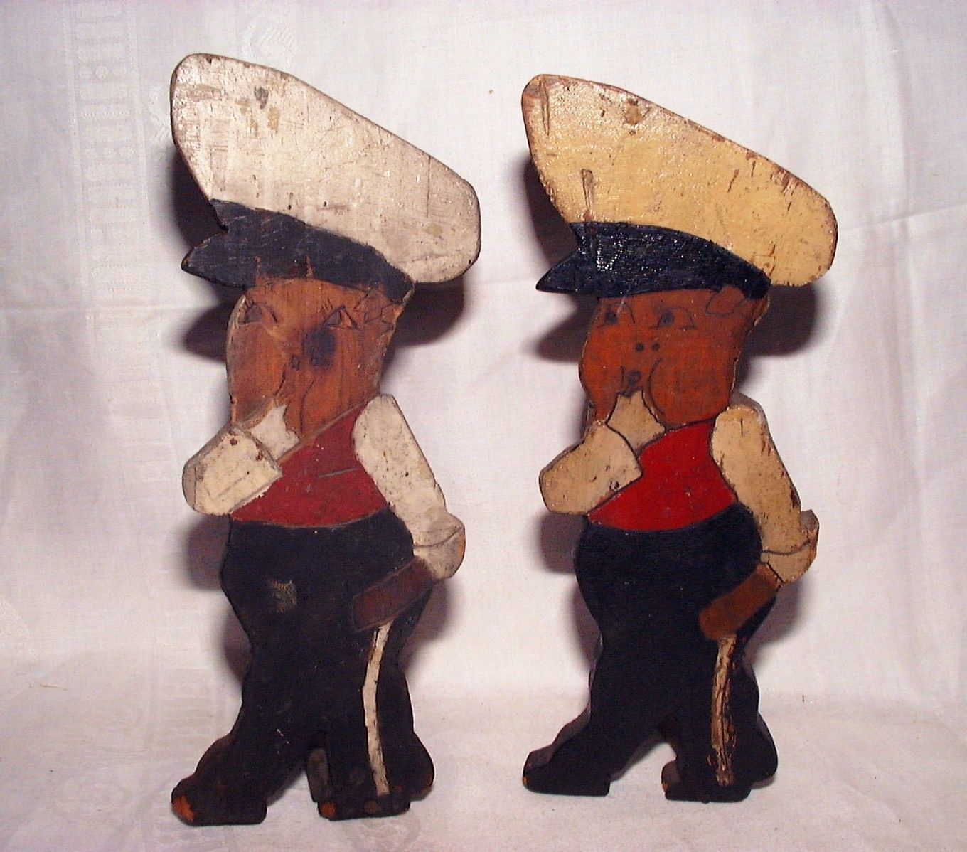 Title (ebay affiliate link): 2 ANTIQUE PRIMITIVE WOOD FOLK ART FIGURES POLICE OR CROSSING GUARDS FREESTANDING