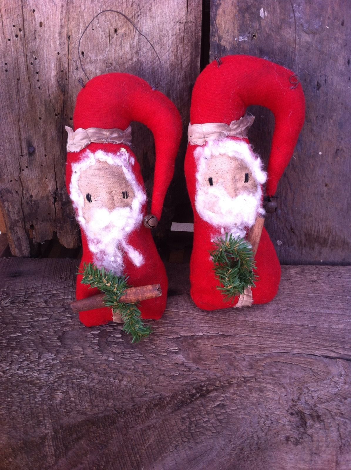 Title (ebay affiliate link): Primitive folk art Wool Santa ornies ornaments Christmas tree decor Winter