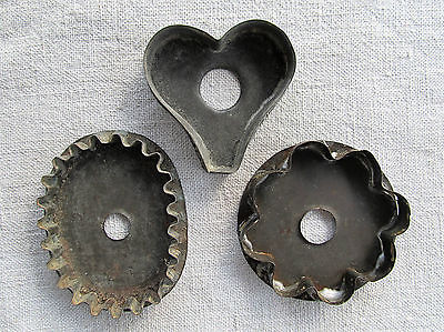 3 Ant. Primitive PA TIN COOKIE CUTTERS Flatback Heart Oval Crimped FOLK ART