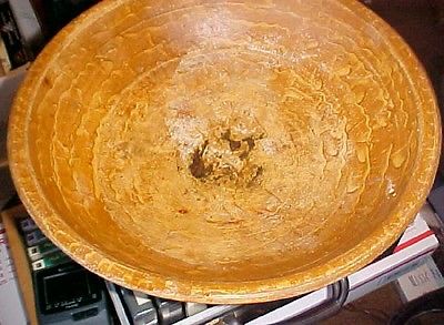 VINTAGE WOODEN ROUND PRIMITIVE BREAD BOWL 15&1/4" ACROSS