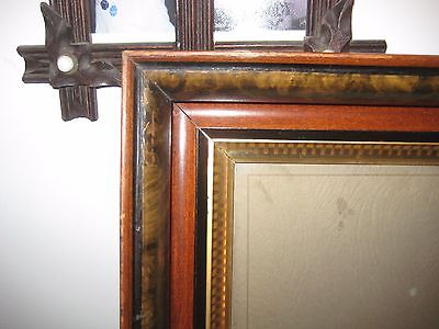 PICTURE FRAME,WOOD & FAUX TORTOISE  ANTIQUE, 4 LAYERS, WALNUT,GOLD, WI. GLASS,