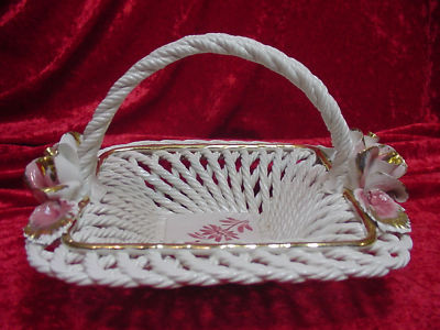 VINTAGE CAPODIMONTE SQUARE BASKET WITH HANDLE