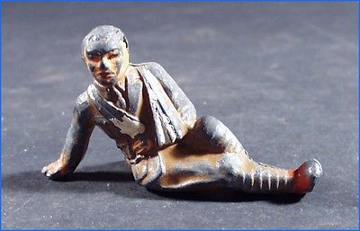 BARCLAY LEAD TOY FIGURE, WOUNDED SOLDIER SITTING UP LEANING ON ARM, MANOIL
