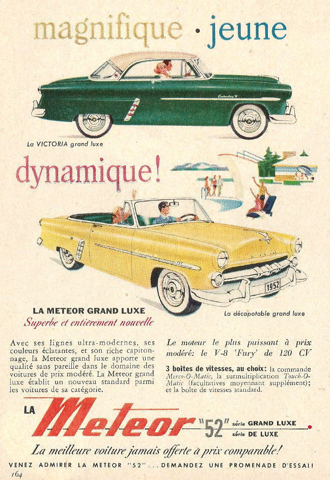 Title (ebay affiliate link): 1952 METEOR VICTORIA & CONVERTIBLE GRAND LUXE AUTOMOBILE ORIGINAL ERA AD IN FREN
