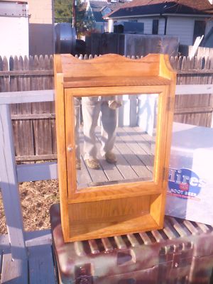 SOLID OAK MEDICINE CABINET WITH BEVELED MIRROR