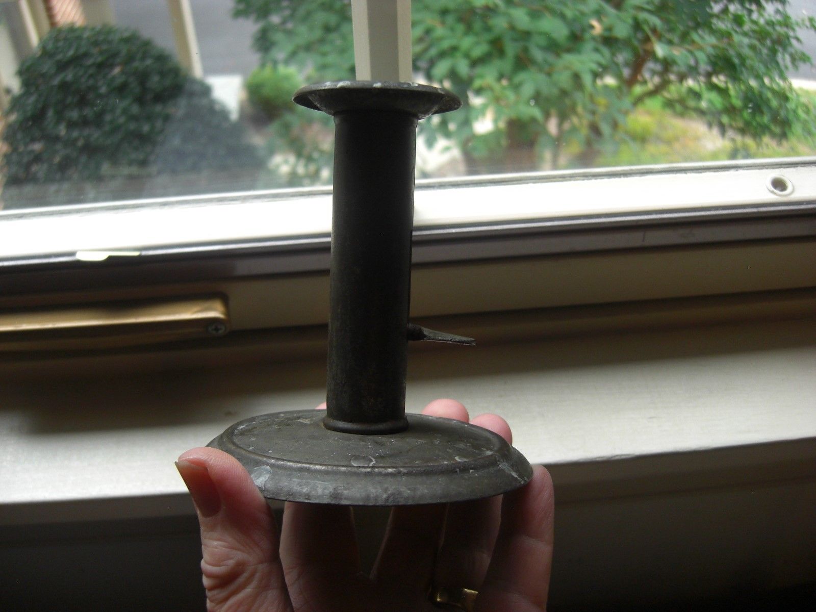 Title (ebay affiliate link): ANTIQUE 19TH C SHAKER PRIMITIVE HOG SCRAPER PUSH UP TIN CANDLE HOLDER