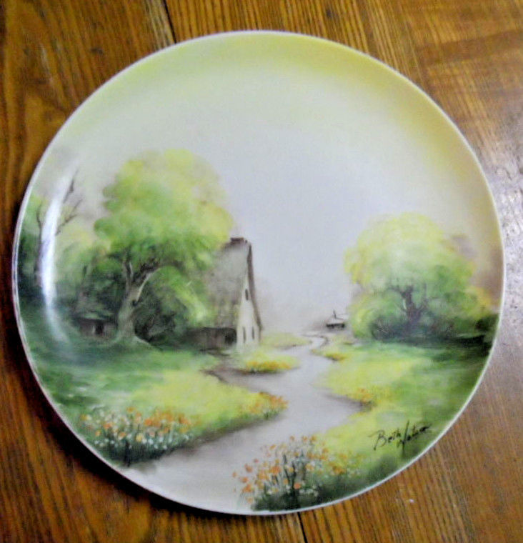 HAND PAINTED CHINA PLATE - COTTAGE SCENE - SIGNED