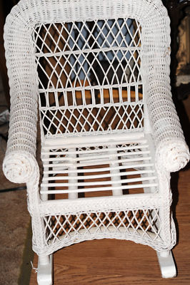 BEAUTIFUL ANTIQUE WICKER CHILDS ROCKING CHAIR
