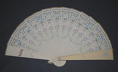 FINE ANTIQUE FRENCH ART NOUVEAU CARVED MOTHER OF PEARL HAND PAINTED SILK FAN