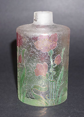 ANTIQUE FRENCH ART NOUVEAU CAMEO POPPY FROSTED GLASS PERFUME BOTTLE ATOMIZER
