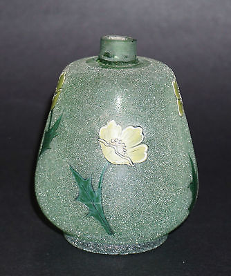 ANTIQUE FRENCH ART NOUVEAU CAMEO FROSTED GREEN GLASS PERFUME BOTTLE ATOMIZER