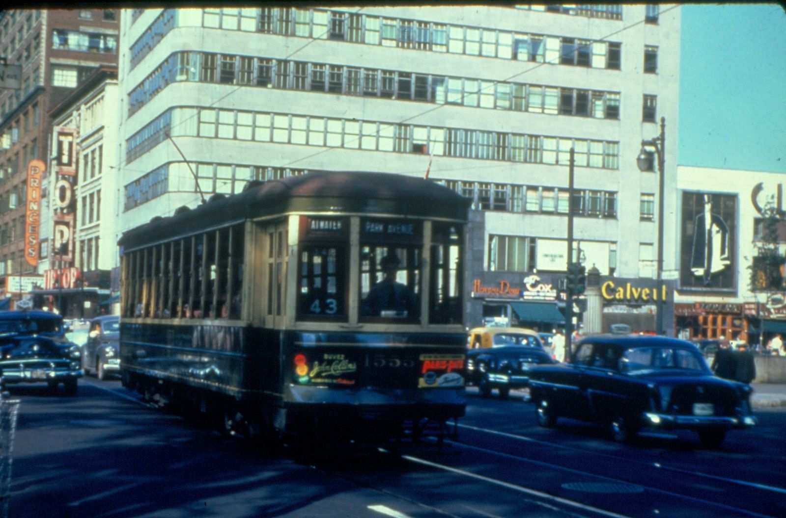 35mm Dupe Slide Montreal Transportation Co Trolley #1555 St Catharine St 1953
