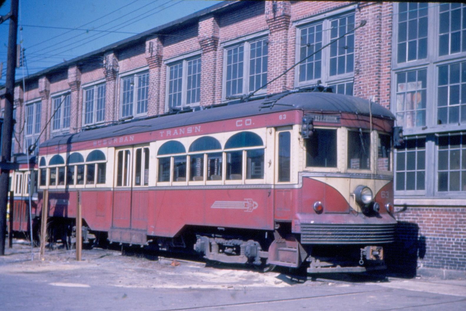 35mm Dupe Slide Red Arrow Lines/PSTC Center Door #63 Llanerch Car Barn 1954