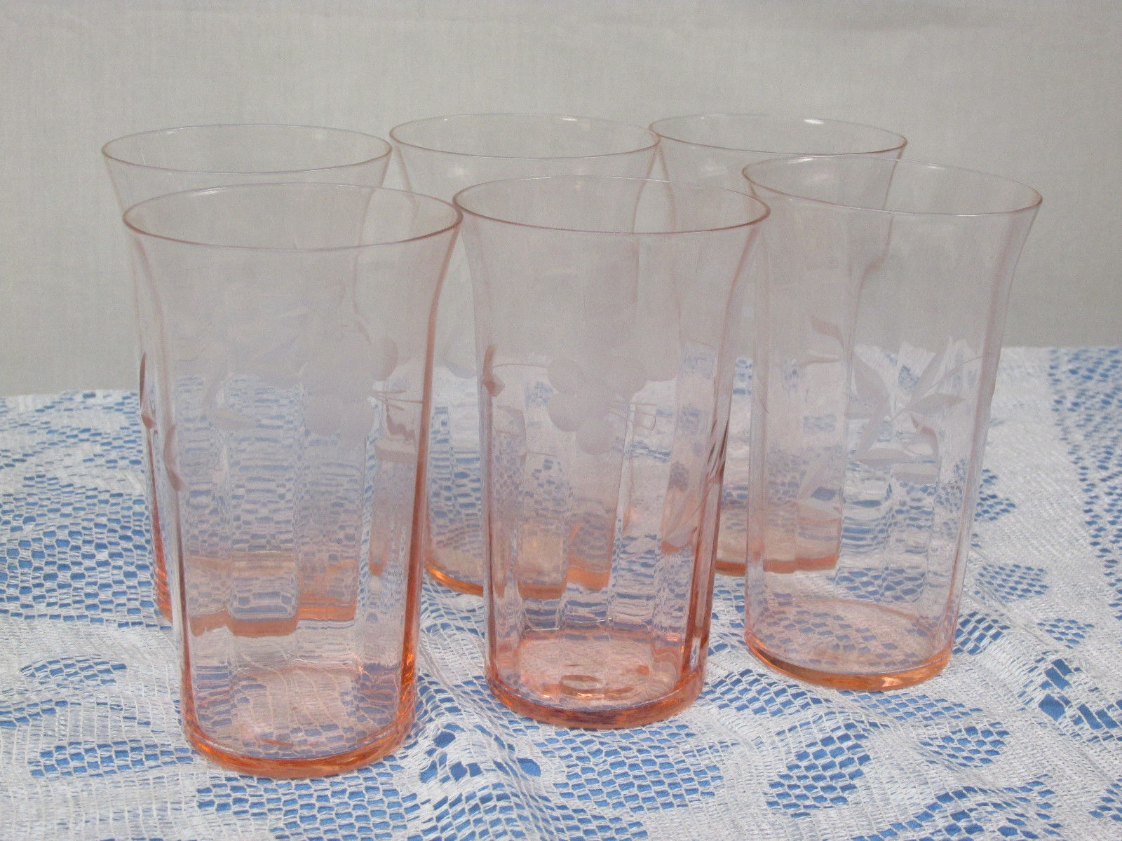Title (ebay affiliate link): Set of 6 Depression Pink Panel Optic Etched Drinking Glasses Tumblers 11 Oz
