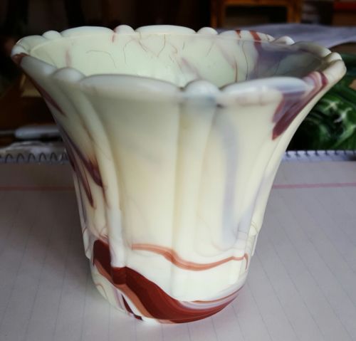 Title (ebay affiliate link): Vintage Akro Agate Depression Glass Fluted Pot 3 1/2" x 4" OX BLOOD SWIRL