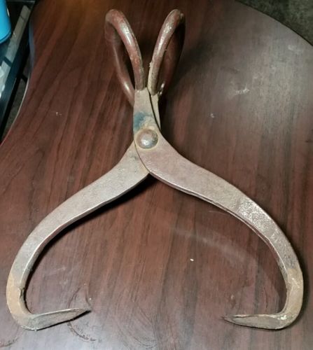 Vintage Black Iron Antique American Primitive Ice Block Tongs Hook