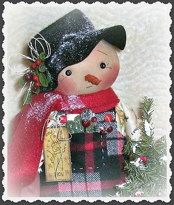Title (ebay affiliate link): PriMitive Folkart Raggedy Snowman ~ Standing Snowman ~ Tree ~ Winter ~Wood Base
