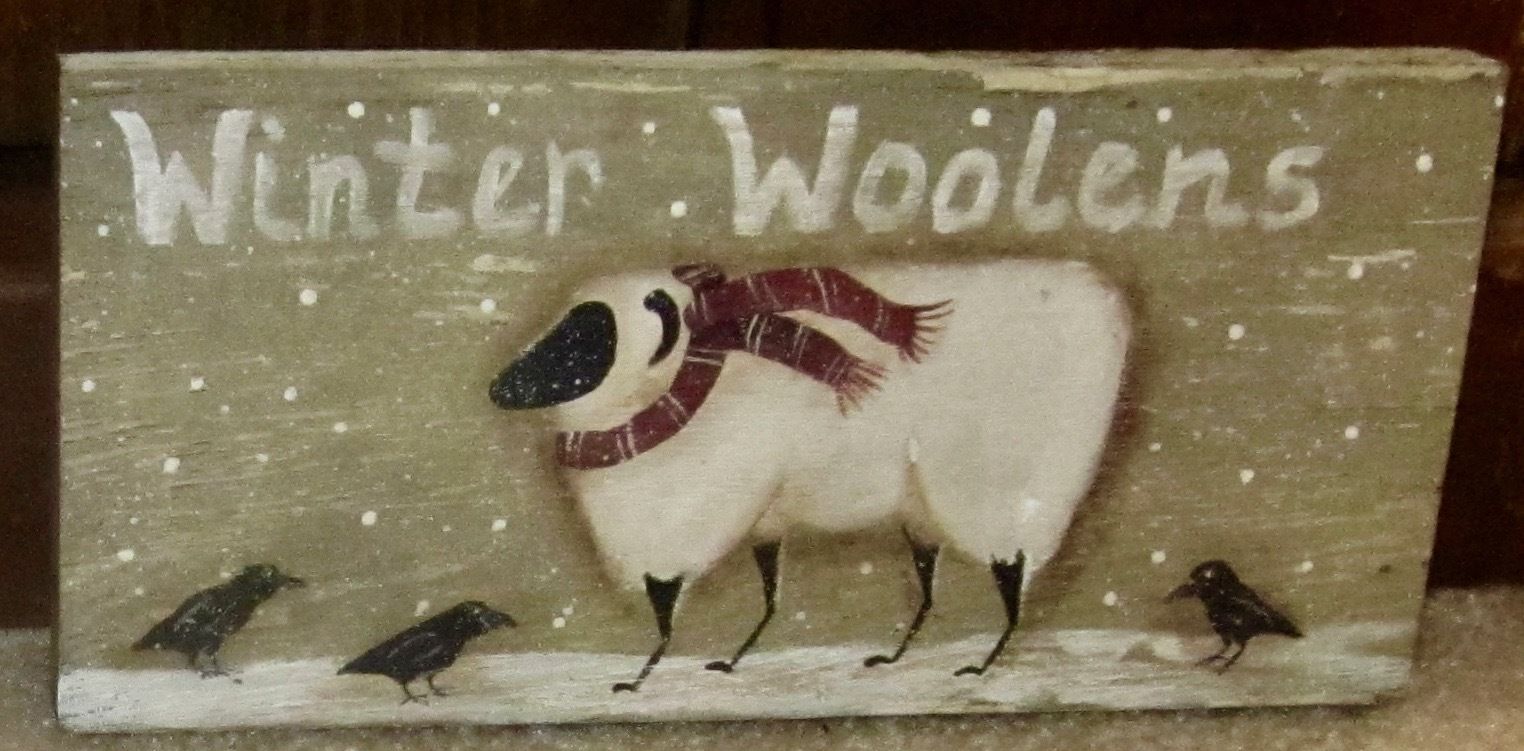 Title (ebay affiliate link): *~*PRIMITIVE*~* HP FOLK ART SHEEP * CROW * "WINTER WOOLENS" * OLD RECLAIMED WOOD