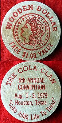 RARE COCA COLA CLAN WOODEN DOLLAR 1979 COLLECTOR CONVENTION HOUSTON, TX