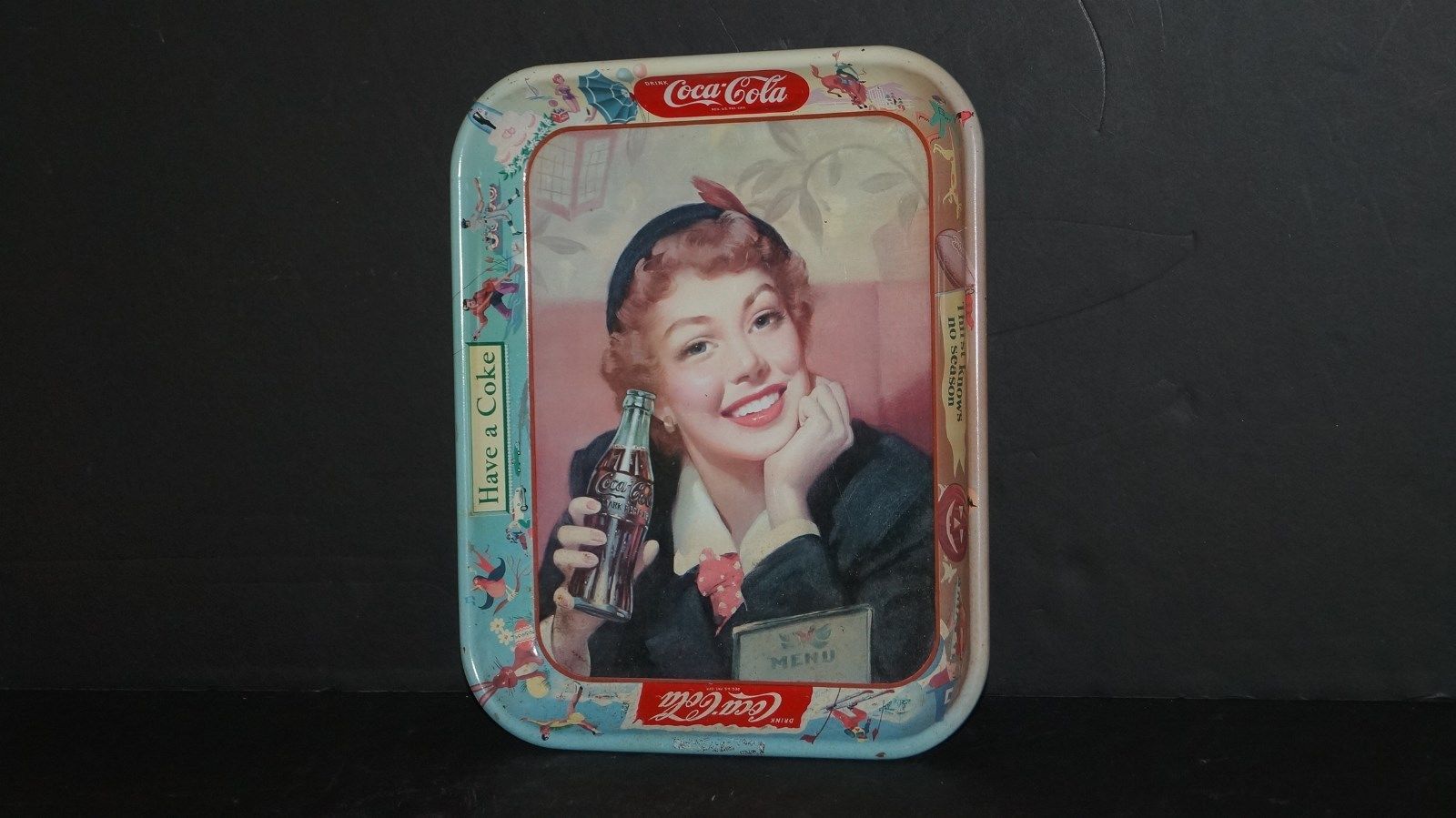 Title (ebay affiliate link): VINTAGE 1953 DRINK COCA-COLA - HAVE A COKE MENU GIRL COKE SERVING TRAY