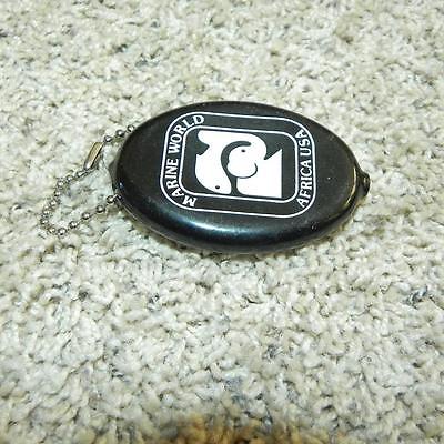 #1967 Vintage Black Rubber Quikoin Oval Change Money Purse Keychain Marine World