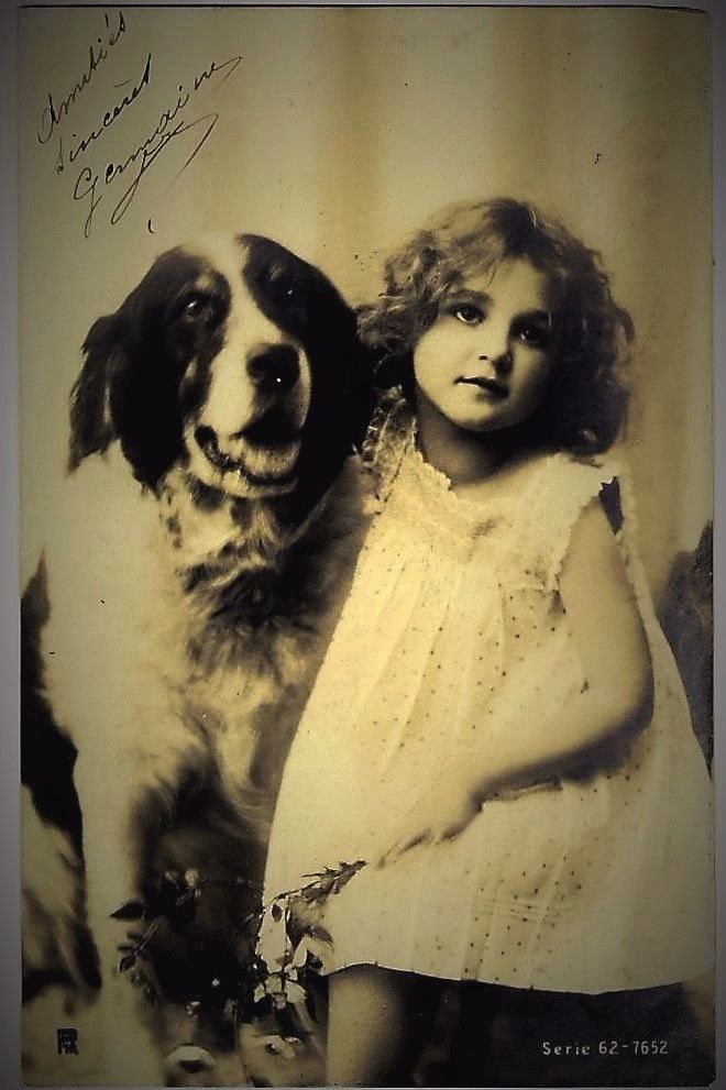 Title (ebay affiliate link): Sweet Little Edwardian Girl w/ St Bernard ? Mountain Dog RPPC postmarked 1902